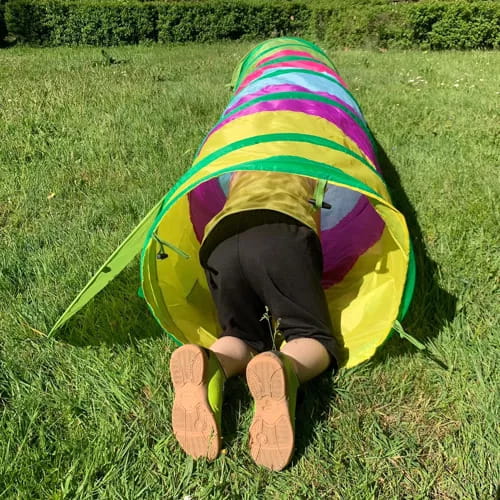 Rozkładanie nigdy nie było tak proste, wystarczy wyjąć z etui, odczepić zapinki a tunel sam się rozłoży. Składanie jest jeszcze prostsze wystarczy od jednego do drugiego końca pociągnąć i włożyć do pokrowca. Namiot w kształcie gąsienicy z pewnością wzbudzi ciekawość i zachęci do zabawy. Ich wyjątkowy wygląd może również pobudzać kreatywność dzieci, zachęcając je do wymyślania różnych scenariuszy zabaw.